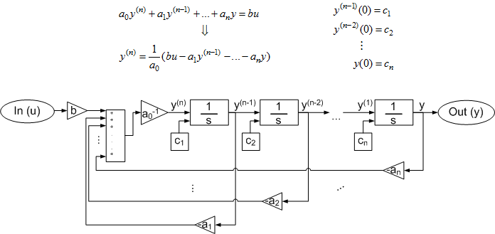 Wytyczne do zapisu równań różniczkowych w Simulinku: